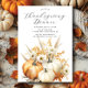 This elegant Thanksgiving dinner invitation features a beautifully designed pumpkin and floral motif, perfect for setting a warm and inviting tone for your holiday gathering. The sophisticated layout combines rich autumn colours with delicate floral accents, making it an ideal choice for inviting family and friends to celebrate the season of gratitude. Ensure your guests feel the spirit of Thanksgiving with this charming and stylish invitation that reflects the essence of the holiday.
