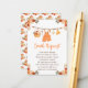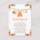 This cute and fun watercolor book request enclosure card features a baby clothes line with orange floral arrangements. The text combines handwritten script and sans serif fonts for a stylish and modern look. This is perfect for an autumn fall baby shower.