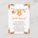 This cute and fun watercolor book request enclosure card features a baby clothes line with orange floral arrangements. The text combines handwritten script and sans serif fonts for a stylish and modern look. This is perfect for an autumn fall baby shower.