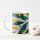 Leaves of various types made in watercolor, spread out from each other, in green and yellow colors, simulating the arrival of autumn.