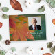 Invite guests to remember your loved-one after their September, October or November passing with the natural Autumn Coloured Leaves Celebration of Life Invitation. This woodsy custom funeral death memorial tribute invite features a close up digitally painted nature photograph of red, orange and yellow coloured Korean Maple leaves on the tree with a blurred green woodland background. Available as a printed invitation for mailing and/or as a digital download for easy sharing digitally online.