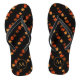 These colourful flip flops have an autumnal theme with diagonal "stripes" made up of tiny maple leaves in fall colours of gold/orange/auburn on a black background with customisable monogram - by katz_d_zynes