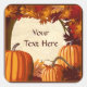A graphic illustration of beautiful autumn leaves and pumpkins on a custom sticker.   Original artwork: Copyright Charmaine Paulson