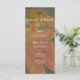 Customise the natural Autumn Colours Wedding Menu with the details of the meal that you will serve at your September, October or November fall bridal shower luncheon, marriage reception dinner or post wedding brunch by adding the salad or first course, entree or second course and dessert or third course. This custom autumnal nuptial menu features a digitally painted nature photograph of orange and red Korean maple leaves on the tree with a blurred green woodland background.