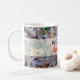 This mug features a beautiful picture of fallen leaves with tiny yellow mushrooms.