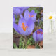 This blank greeting card features my photograph of an Autumn Crocus, Colchicum autumnal. This beautiful flower heralds the start of Autumn with it’s large mauve flowers carpeting the ground under trees which are already turning colour. The detail of the flower is amazing, light mauve petals with striking dark mauve veins, and bright orange stamens. This card is perfect for all occasions.
