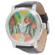 SO awesome- the watch face is large and it really makes a statement. I love the way the landscape looks (And I am a woman, this is a man's watch but, I like it for both!) Statement piece. Great for those who love wearable art and unique gifts, watch collectors, those who adore Autumn! PERFECT! Looks really cool. I like looking at it- it has a calming (non-digital 'go-go-go' feel)