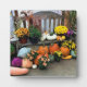A beautiful display of flowers, pumpkins, & squash in a garden setting. Very pretty autumn decor!