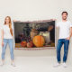 Autumn Decorations on Table, Pumpkin, Fruit, Drink Throw Blanket