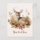 Postcard with a painting of a beautiful little baby deer sitting in the autumn leaves. Personalise by adding your own text.