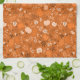 Add a touch of autumn to your kitchen decor with this festive fall towel. It features a hand drawn illustrated pattern made up of pumpkins, apples, leaves, acorns, and flowers in shades of orange.