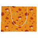 These high-quality gift bags feature artistic fall illustrations — cascading leaves, pumpkins, acorns, and soft warm tones.