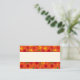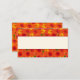 Fall leaves blank place cards. Little flat cards have a bright orange design with a background of red, yellow, orange and green leaves. Hand-write a guest's name on the solid, off-white panel. Include a table number if using as escort cards.
