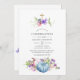 Sweet peas and pumpkins confirmation invite with hues of pink, purple, violet and blue and elegant handwriting typography customisable to your event specifics.