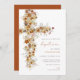 Time to gather for your little one's baptism with a customisable fall floral cross baptism invitation. Edit your autumn christening invite with all of the details.