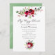 Red and blush pink roses and peonies Autumn pop, fizz, clink bridal shower invitations with accents of purple and sage green.