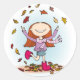 Autumn fall fun girl's stickers. Enjoying fun in the autumn leaves. Cute illustration to celebrate all that is wonderful about the autumn season. Designed by Sarah Trett.