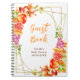 This beautiful and elegant guest book features watercolor pomegranate, apples, grapes, mushrooms and foliage on a gold geometric frame. The text combines handwritten script and serif fonts for a stylish and modern look. This is perfect for a rustic autumn fall baby shower.