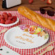 This beautiful and elegant plate features watercolor pomegranate, apples, grapes, mushrooms and foliage. The text combines handwritten script and serif fonts for a stylish and modern look. This is perfect for a rustic autumn fall birthday.