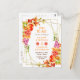 This fun and whimsical save the date postcard features watercolor pomegranate, apples, grapes, mushrooms and foliage on a gold geometric frame. The text combines handwritten script and serif fonts for a stylish and modern look. This is perfect for a rustic autumn fall wedding.