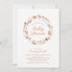 This autumn foliage baby shower invitation design features a modern fall wreath with leaves, flower, and birds. More matching items available in my shop BaraBomDesign.