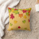 This throw pillow is shown with a pretty autumn fall leaves print on a light golden colour background.