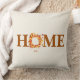This throw pillow is shown in a off white colour with a autumn fall leaves print design with a home text.