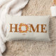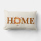 This throw pillow is shown in a off white colour with a autumn fall leaves print design with a home text.