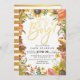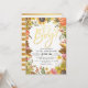 Baby Shower Invitation Cards Templates - Elegant Gold Script and Autumn Maple Fall Leaves Pumpkin Sunflower Watercolor Floral.