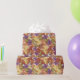 A collage pattern of tree leaves in hues of purple, red, orange, yellow, brown and green. Use gift wrap for a variety of occasions - a wedding, bridal shower, thanksgiving and outdoor nature theme events.
