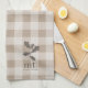 Autumn Fall Taupe Plaid Modern Foliage Monogram Tea Towel
