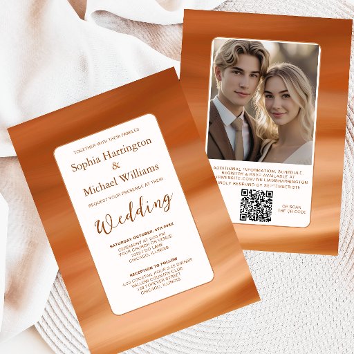 This customisable terracotta wedding thank you card features a cherished photo of the bride and groom alongside an elegant message honouring the love and support of family and friends. With its simple, timeless layout, it's a beautiful way to share your gratitude and preserve the heartfelt moments that shape your new chapter together.