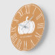 Get an elegant autumn style in your home with this white pumpkin silhouette and rustic orange background clock with white roman numerals.
