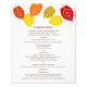 © 2013 Socialite Designs. Wedding reception dinner menu for insertion into frames to add to tables. Our elegant falling leaves design in red, rust, orange, yellow and gold. Please contact Socialite Designs if you require help with customising this menu for your event. Each leaf design can be individually resized, moved, rotated or deleted or duplicated (copy) to create more leaves. Text is in dark brown.