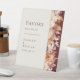 This autumn floral burgundy cream wedding favours pedestal sign design is a dreamy ensemble that embodies the essence of vintage charm and modern elegance. Featuring autumn florals and leaves in fall colours, accented with gold geometric borders, our design offers a simple yet captivating aesthetic perfect for your summer or fall celebration. Against a dark burgundy and beige background, our curated selection of invitations, stationery, and decor exudes warmth and natural beauty, creating an inviting atmosphere for your special day. Explore the collection today and celebrate your wedding day with the beauty of autumn. For personalised coordination or any questions, please don't hesitate to reach out.