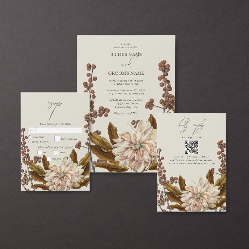 Autumn Floral Earthy Tones Watercolor Fall Wedding Invitation