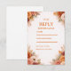 A warm and sophisticated design featuring soft peach, orange, and blush floral arrangements inspired by autumn. The composition is framed with delicate botanical accents, creating a balanced and refined layout. Clean structure and elegant typography enhance the timeless and romantic aesthetic, offering a harmonious blend of nature and classic style.