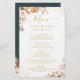 Autumn Floral Leaves Boho Chic Wedding Dinner Menu