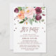 This autumn floral rose gold light wreath "Let's Party" invitation card is perfect for a summer or fall event or party. The design features a stunning bouquet of blush, orange peach, and marsala burgundy flowers with faux rose gold foil typography and confetti. The backing features a gorgeous flower wreath with the words "Let's Party".