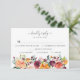 This elegant autumn floral RSVP card features pretty calligraphy lettering, a bouquet of fall flowers along the bottom, and three meal choices. The autumn watercolor flowers include roses, mums, and buttercups in shades of peach, burgundy, plum, blush pink, and burnt orange. We offer matching wedding stationery in our "Autumn Elegance" wedding collection.