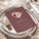 Fall in love with these romantic invitations for autumn bridal shower teas. Elegant design features a warm burgundy background graced with a bouquet of watercolor flowers nestled in a teacup.