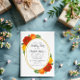Autumn red, orange and gold florals bordering gold circle frame with eucalyptus and botanical greenery for a fall event