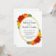 Autumn red, orange and gold florals bordering gold circle frame with eucalyptus and botanical greenery for a fall event