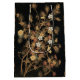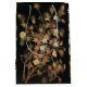 This vintage botanical illustration by G.A. Audsley (George Ashdown Audsley) from the 1884 publication The Ornamental Arts Of Japan captures the essence of Japanese autumn. Set against a dramatic black background, the composition features golden and white flowers blooming amid gilded branches. Leaves shimmer in gradients of gold and red—reminiscent of autumn maple foliage—while delicate veins and textures enhance their naturalistic detail. Audsley, a renowned British designer celebrated for his studies of Oriental art, blends botanical accuracy with decorative elegance, using metallic pigments to evoke the season’s luminous beauty. The stark contrast between the inky backdrop and gilded elements creates a timeless ode to fall, reflecting the book’s focus on Japan’s ornamental traditions. As a public domain image, this piece exemplifies the fusion of scientific illustration and artistic craftsmanship in late 19th-century design.