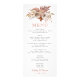 Autumn is a special time of the year when the air is crisp and the colours of nature are vibrant. The beauty of the season is reflected in the stunning floral design featured on the wedding menu card. A bouquet of flowers and foliage in a variety of earthy hues is presented against a crisp white backdrop, while the back of the menu card features a bouquet of flowers in autumnal colours against a striking terracotta clay colour background. Whether you are planning a wedding in the fall or just want to bring some of the beauty of the season into your event, this menu card is sure to be a hit. Its unique design and colours will make it a stand-out piece that your guests will remember.