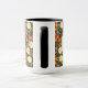 Beautiful floral pattern mug in shades of orange, red and green with a bold black background. Personalise it with your monogram. Makes a great gift.