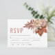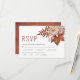 Autumn bouquet with flowers and leaves terracotta wedding RSVP response card. This lovely wedding design features a floral bouquet of dalia flowers and foliage. The back includes a terracotta stained background.