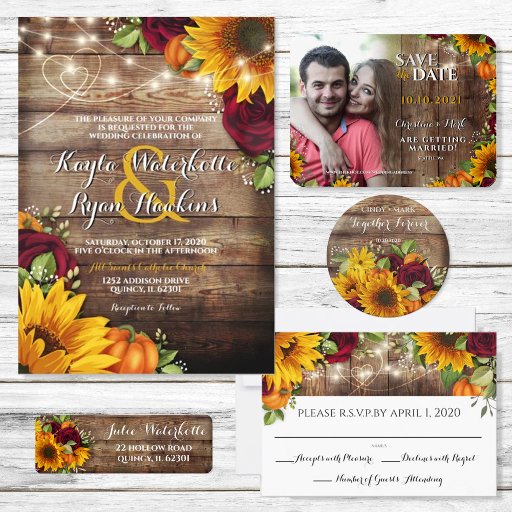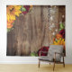 Sunflower, pumpkin and burgundy roses rustic photo prob backdrop. Make it an event to remember with our large tapestry designed with yellow sunflowers, pumpkins and burgundy roses and baby's breath over a wood plank background. Your guests will LOVE posing in front of this awesome Rustic Sunflower and Rose Bridal Shower backdrop! This will be the hit of the shower!