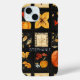 This phone case showcases a folk art quilt-style patchwork, filled with rustic and autumnal motifs. Arranged in a grid of squares and rectangles, it features pumpkins, falling leaves, birds, hearts, and stars, all rendered in a cosy primitive style. The warm earthy colour palette of orange, brown, gold, black, red, and cream creates a harvest-inspired aesthetic perfect for autumn, Thanksgiving, farmhouse décor, and country living. With visible stitching details and a homespun charm, this pattern embodies the traditional, handmade look of rustic quilting while celebrating the season’s bounty.