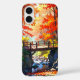 Beautiful anime phone case depicting a wooden bridge in an autumn forest with colourful leaves and gentle sunlight. Ideal for serene and scenic fall lovers.